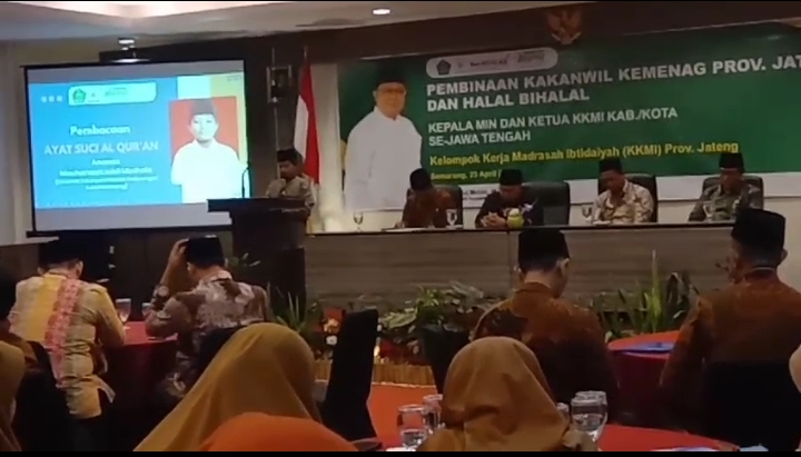 M. Luthfi Mushoffa, siswa MI Futuhiyyah Palebon, menunjukkan bakatnya dalam membaca Tilawatil Qur’an dengan tampil di acara Halal bihalal KKM MI tingkat provinsi Jawa Tengah di Hotel Candi Indah Kota Semarang.